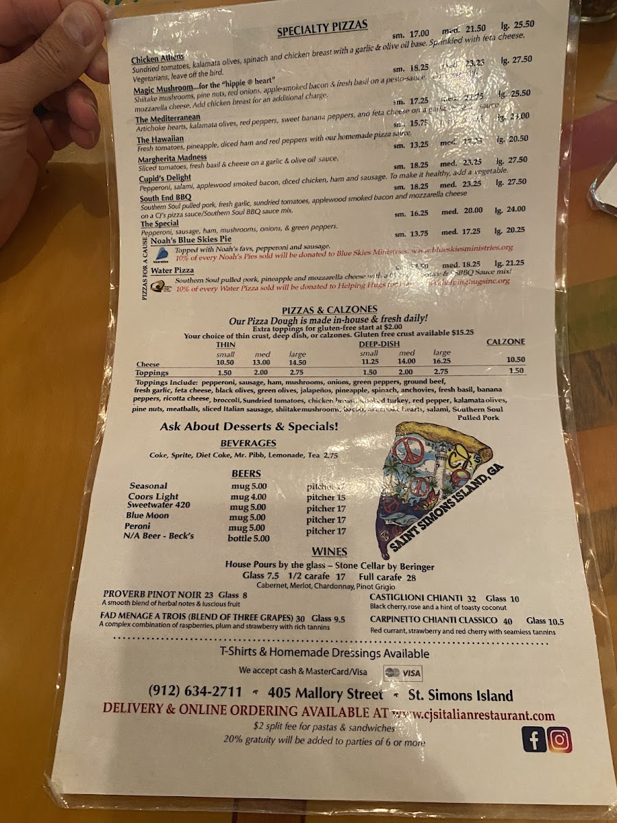 Welcome to CJ's Italian Restaurant, a hidden gem located in the heart of St. Simons Island, Georgia. At CJ's, authenticity reigns supreme, with a menu that celebrates traditional Italian flavors. Indulge in a wide selection of pastas, ranging from the classic Alfredo to the robust Pasta with Sausage Links in Marinara. Each dish is crafted with care and can be tailored to your taste.